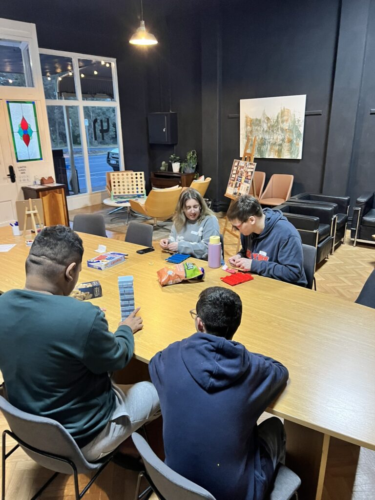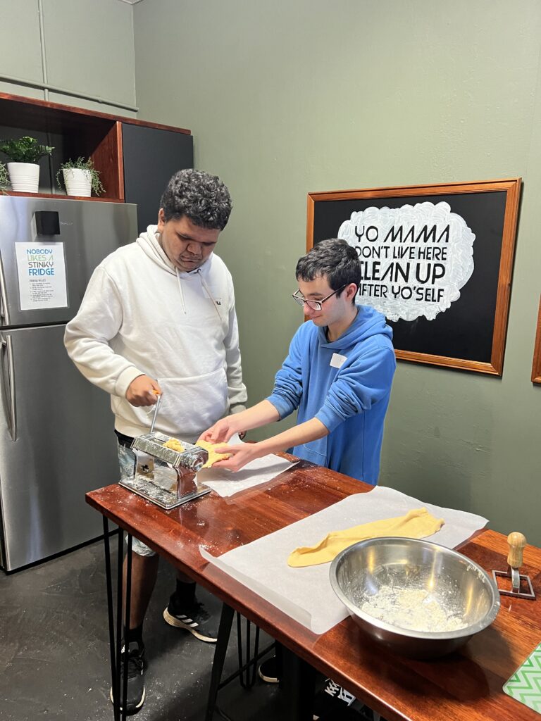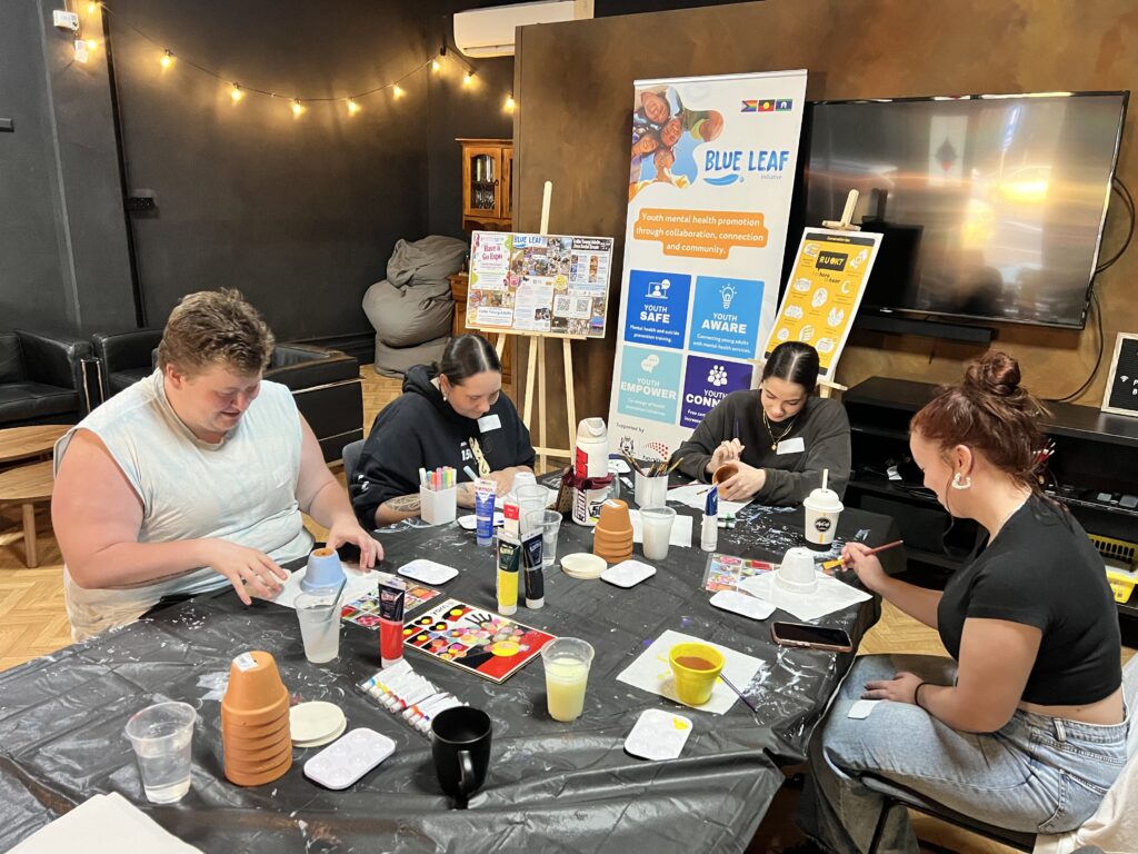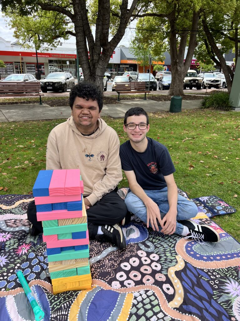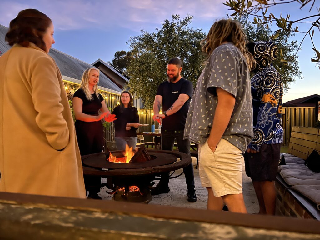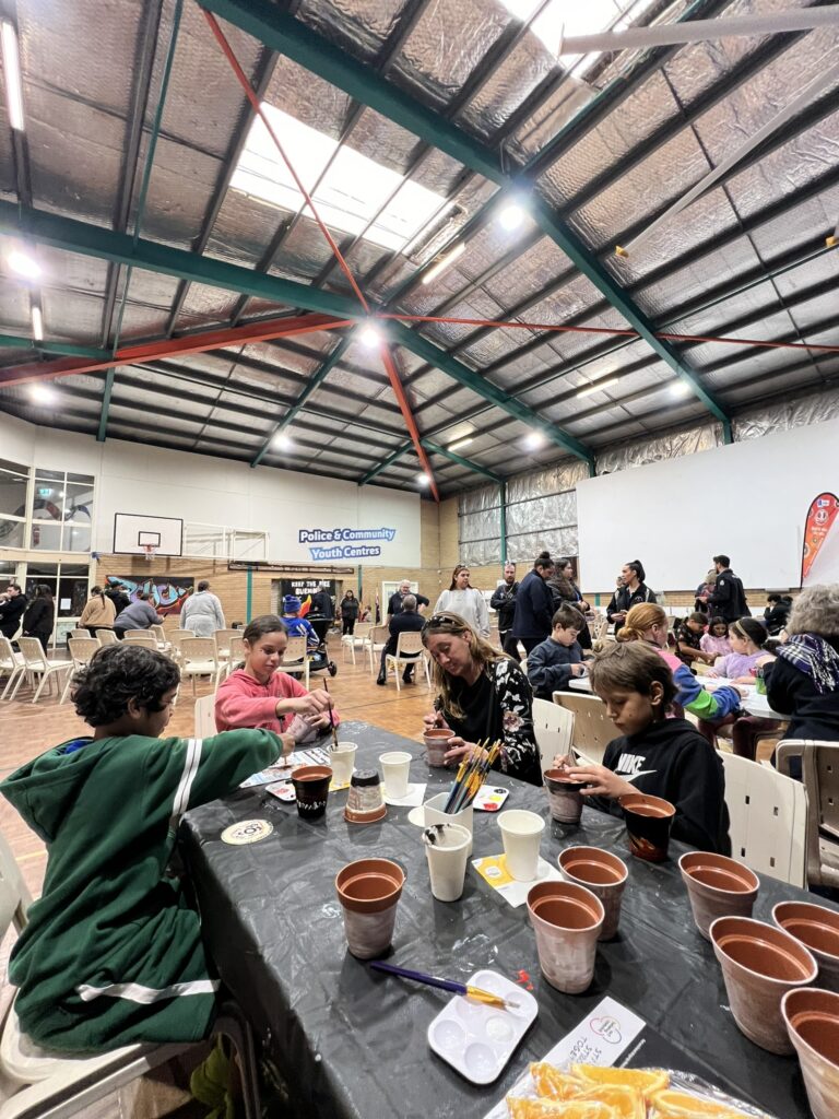 Collie Young Adult Cafe Launch attendeesCollie NAIDOC Week – Flowerpot paintingYoung Adults Games NightJenga building by attendees at young adult picnicSundowner attendees having a chat and warming up by the fire pitPrize winner for Young Adult bring your own arts and crafts activityHomemade Pasta NightFlowerpot painting – Painting and Pasta Night