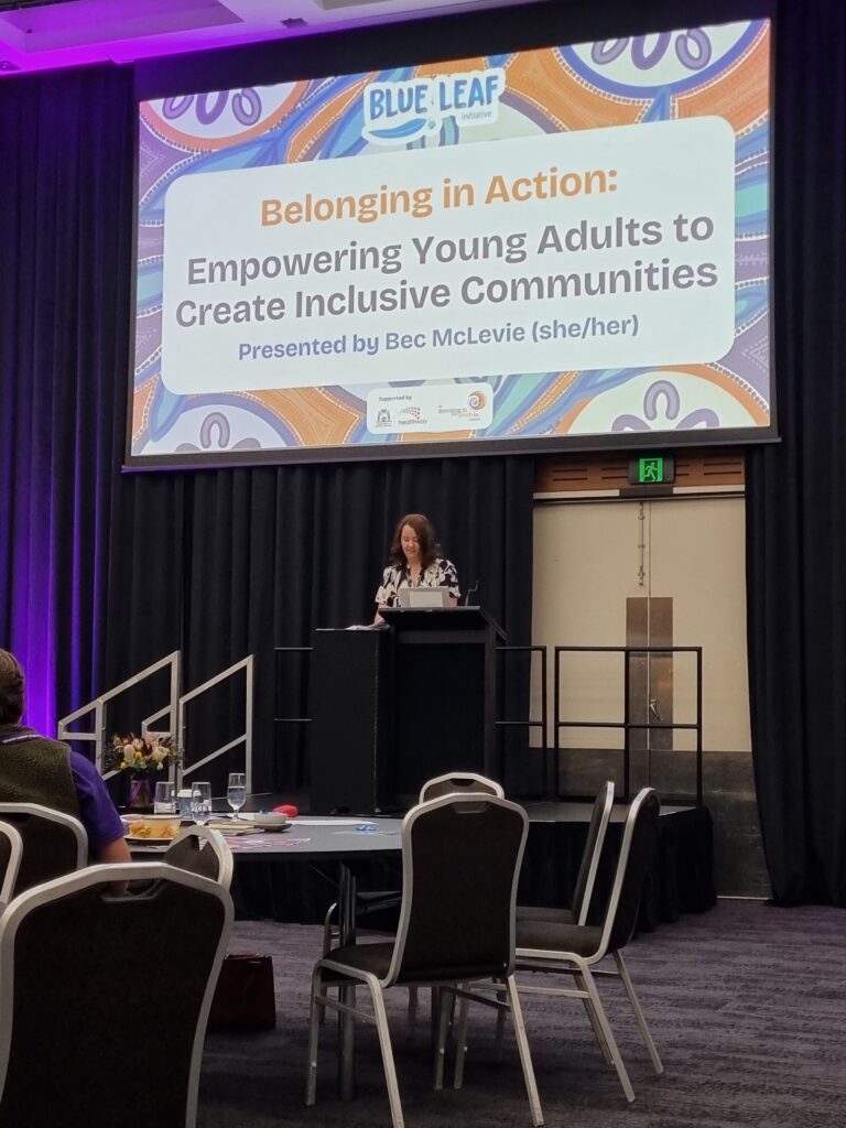Indigenous Acknowledgement of Country Blue Leaf Coordinator: Bec presents on Belonging in Action and how it has been implemented at Blue Leaf through the voices of young adults
