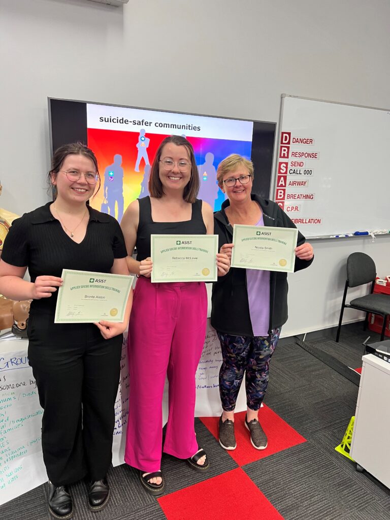 Group involvement and discussion at Wesley Life Force Youth Suicide Prevention TrainingSuicide-safer communities training completed by Bronte, Bec and NickyJen Smoker; speaker on Non suicidal self-injuryCommunity support at non suicidal self-injury community workshop