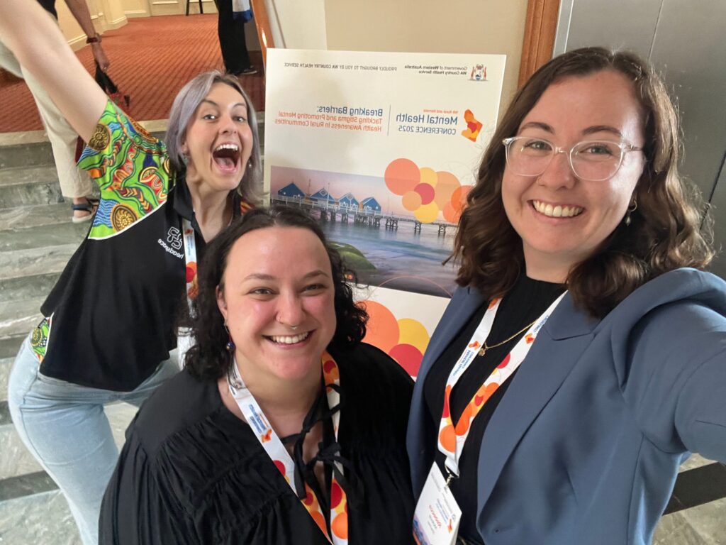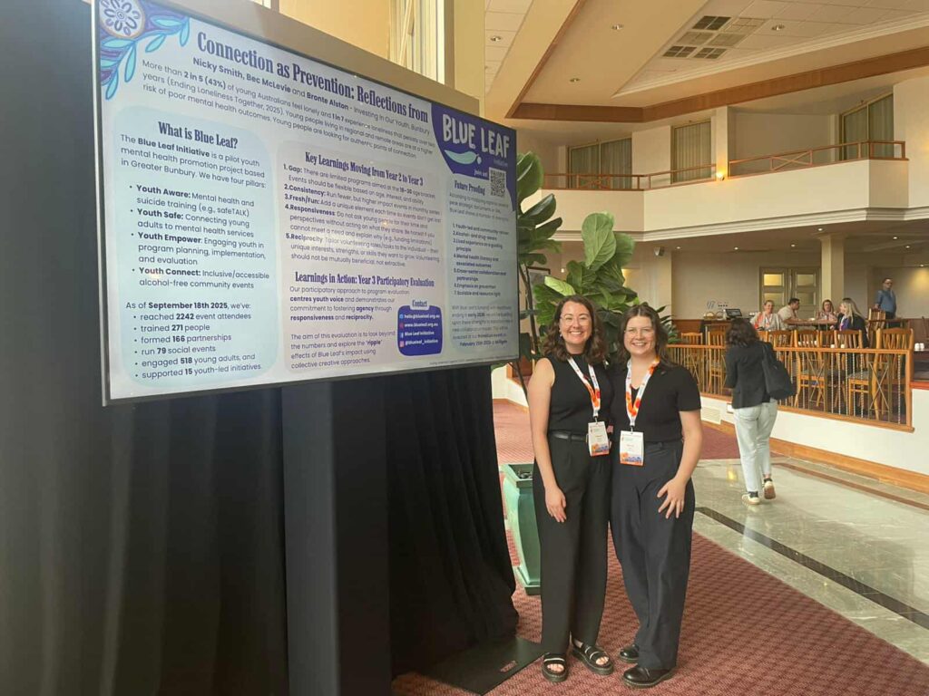 Blue Leaf Coordinator (Bec) and Youth Worker (Bronte) presenting findings at the Regional and Remote Mental Health Conference in Perth. Blue Leaf Coordinator (Bec), Alannah and Eloise attending the Regional or Remote Mental Health Forum in Perth.