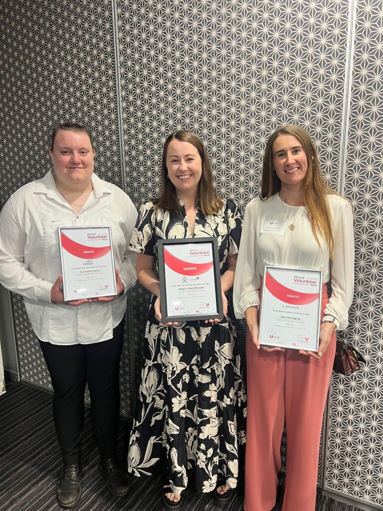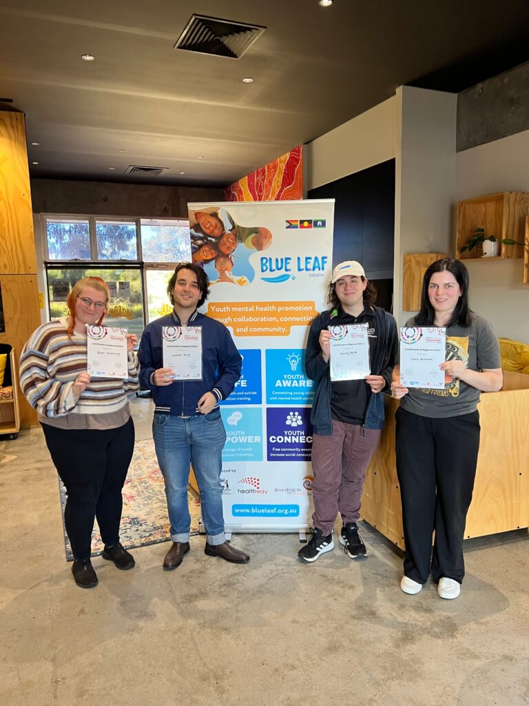 Volunteering Working Group get together for March Blue Leaf volunteers: Lachlan, Quinn, Ashley and Emily are presented with certificates of appreciation Ace (Young Volunteer award finalist), Bec (Volunteer Leader award recipient) and Kate (Volunteer award finalist) all represented Blue Leaf at the Volunteer Southwest Awards Night